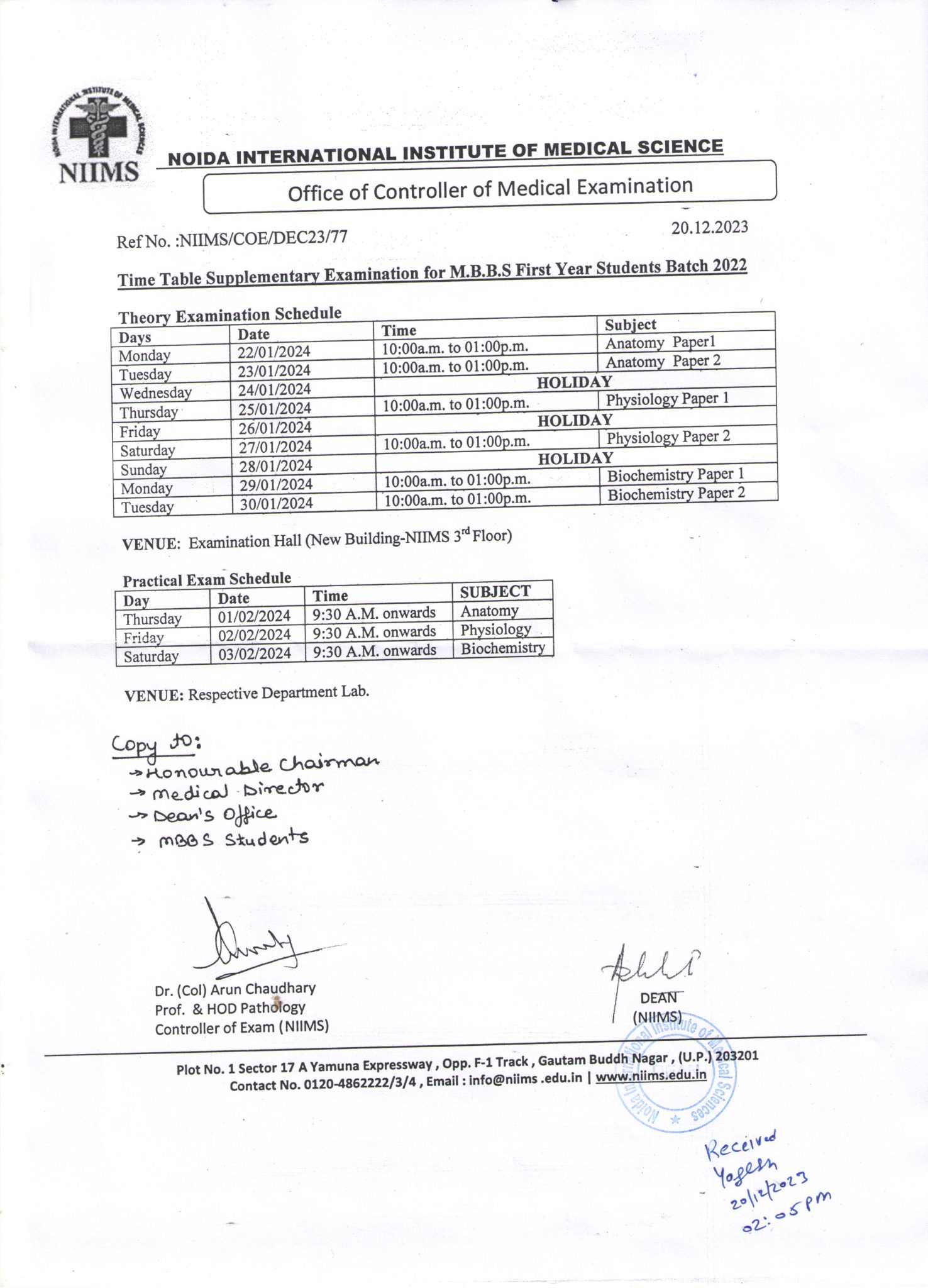 | MBBS Examination Schedule (Theory) Jan. 2023 | 15/12/2022 |