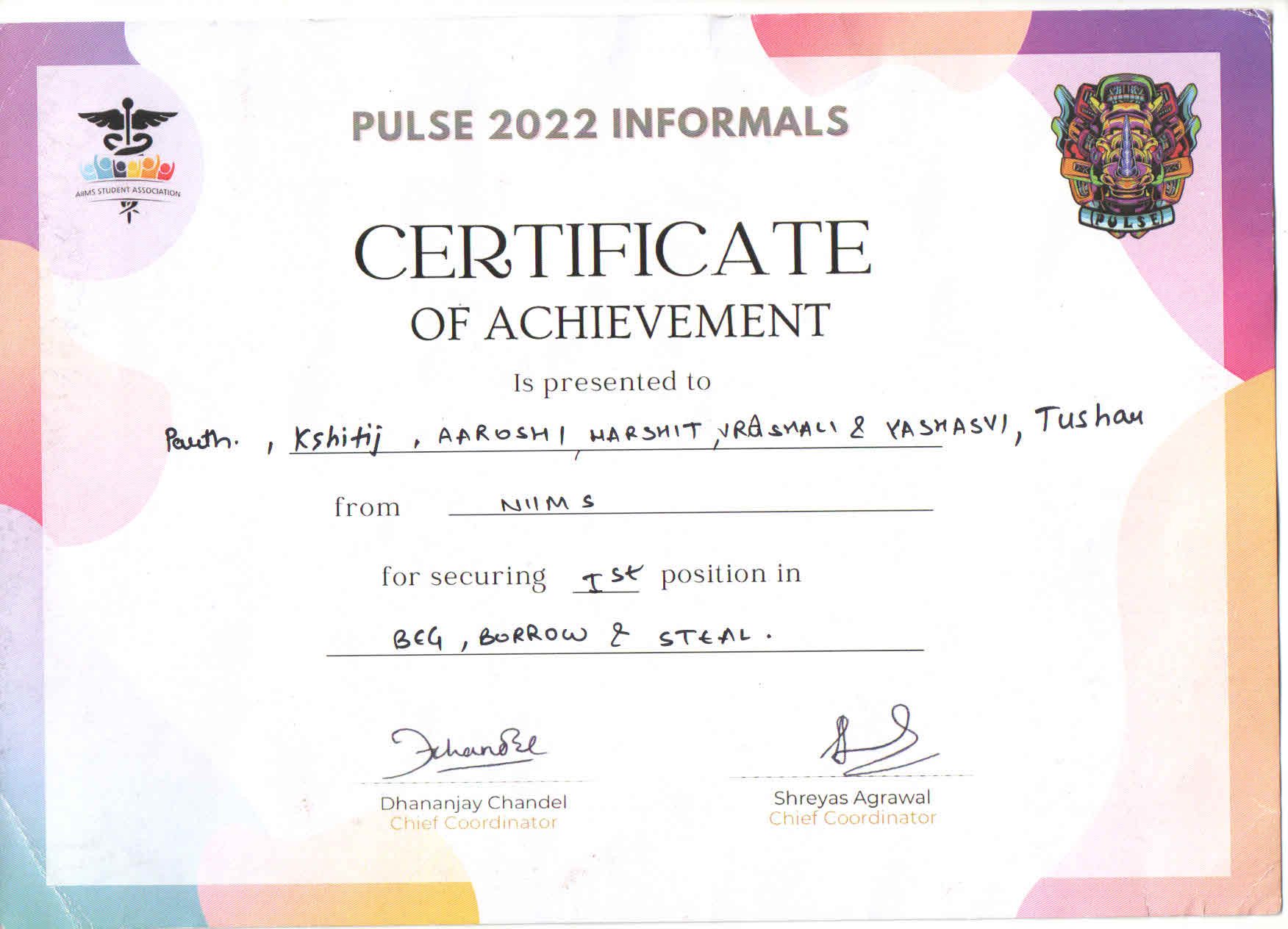 01 : Awarded 1st Prize in Poster presentation for topic: “Cytodiagnosis of extra- medullary hematopoiesis in thyroid gland unravelling an asymptomatic hematological malignancy” in a National Conference- MACyCON 2021, 4th Annual Conference of Cytology- 6th-7th Feb’2021, organized by Association of Cytologists of Maharashtra & Topiwala National Medical College,